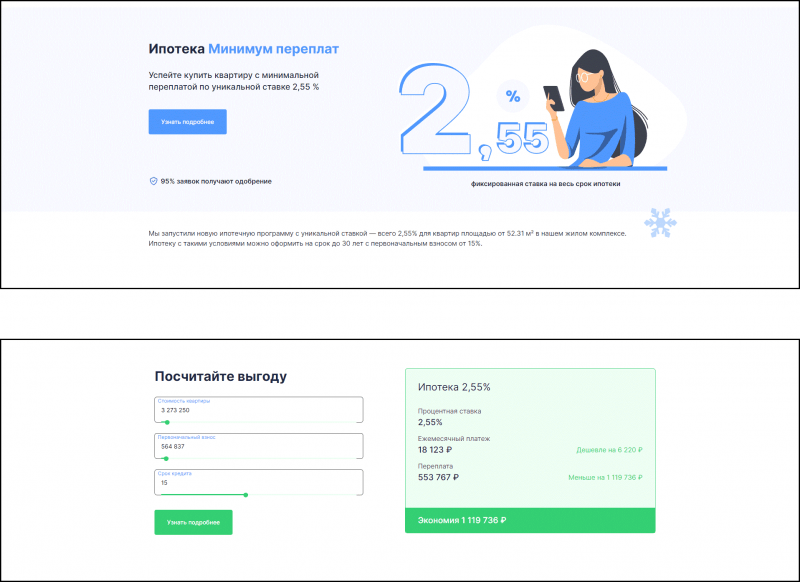 - Призыв к действию. Ставка по ипотеке, платеж в месяц, скидка при покупке на старте – мы должны простимулировать клиента на немедленную покупку, предоставив каждому покупателю полную информацию о сделке, чтобы повысить доверие к застройщику.