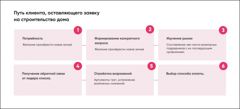 Ниша частного домостроительства предполагает длительный цикл сделки и нуждается в грамотно разработанной digital-стратегии, где все инструменты будут дополнять и усиливать друг друга. Мы инициируем взаимодействие с клиентом, подогреваем интерес и плавно подводим заключению договора.