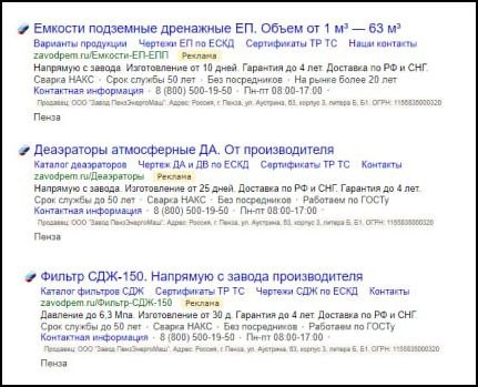 Ну и … барабанная дробь …, – креатив. При грамотном подходе объявления могут стать дополнительным «фильтром» для отсеивания нецелевой аудитории, что впоследствии позволит сэкономить бюджет. К примеру, опираясь на всё тот же пример с заводами, мы бы посоветовали делать упор на технические характеристики продукта и условия сделки: