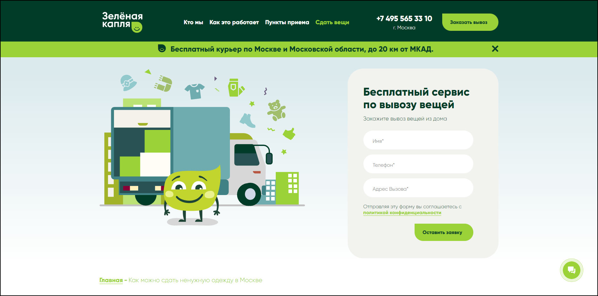 ООО «Зелёная Капля» — городской сервис по сбору вещей и одежды в Москве
