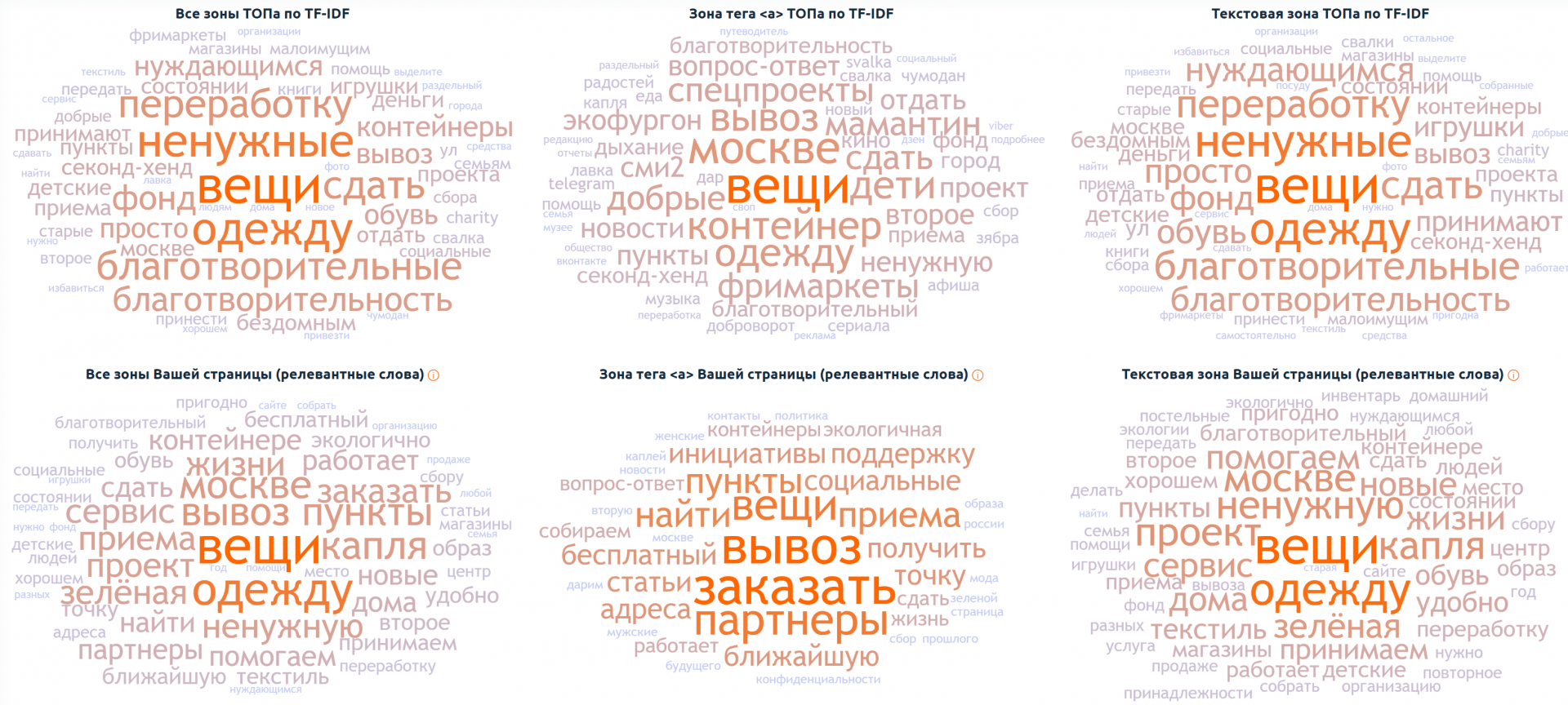 Рисунок 10. Скриншот облака ТОПа и продвигаемого сайта