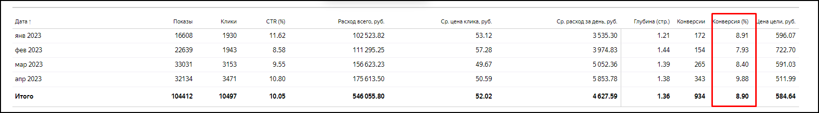 Результаты от эксперимента превысили наши ожидания: в апреле 2023 года мы зафиксировали лучшие показатели за все время работы рекламных кампаний.