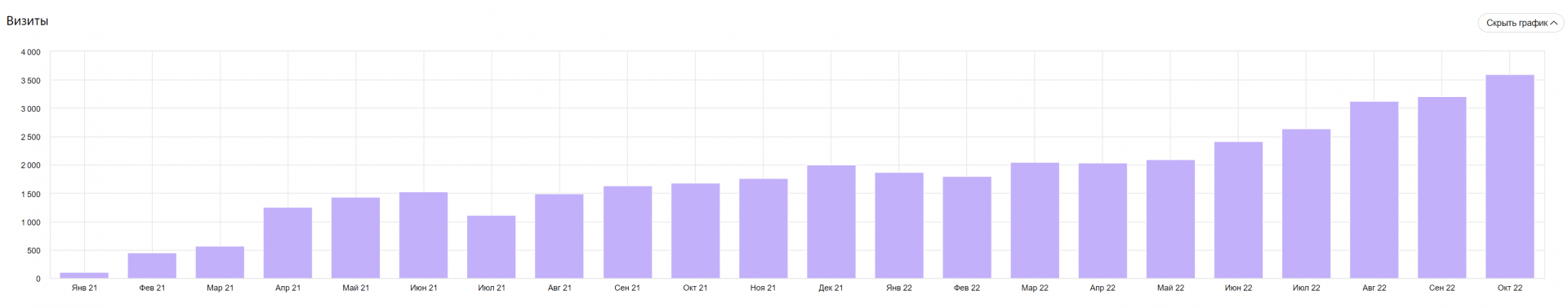 Благодаря SEO-продвижению почти 2 года сотрудничества мы достигли трафика в 3600 человек в месяц со 100.