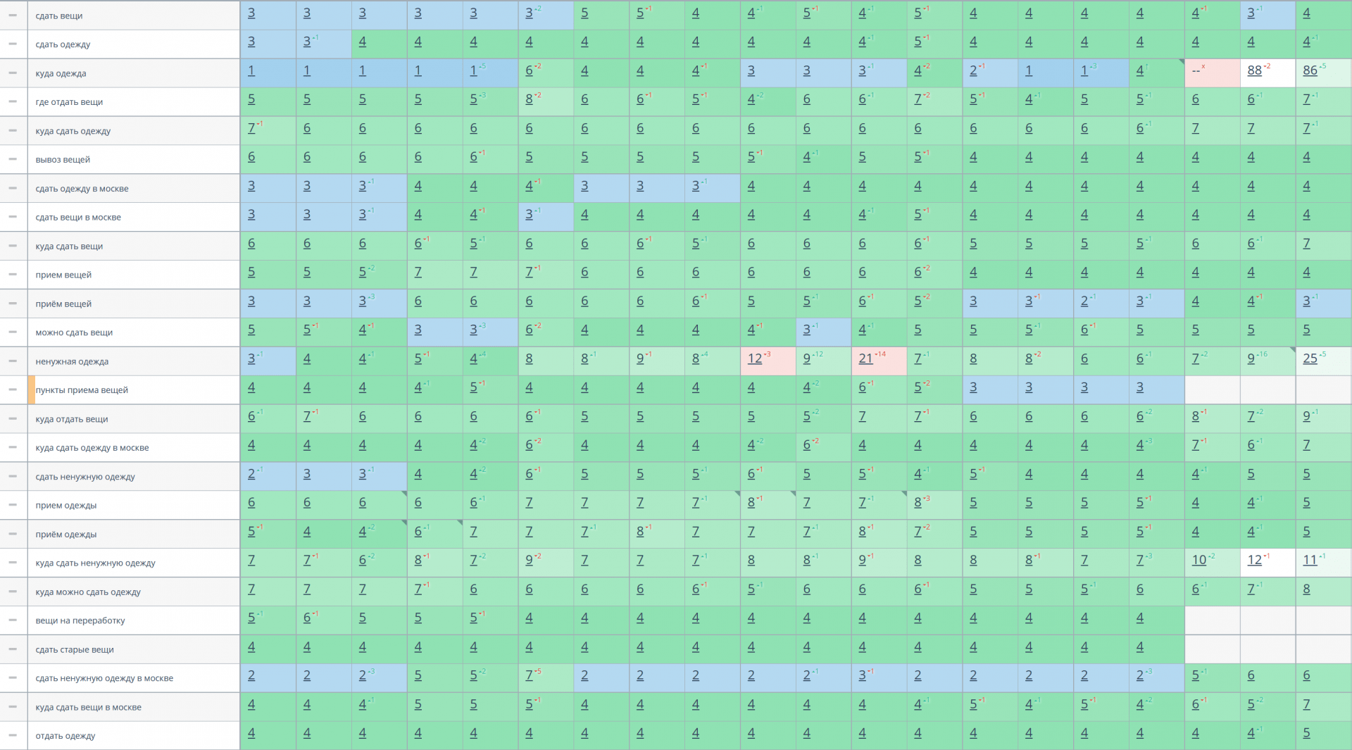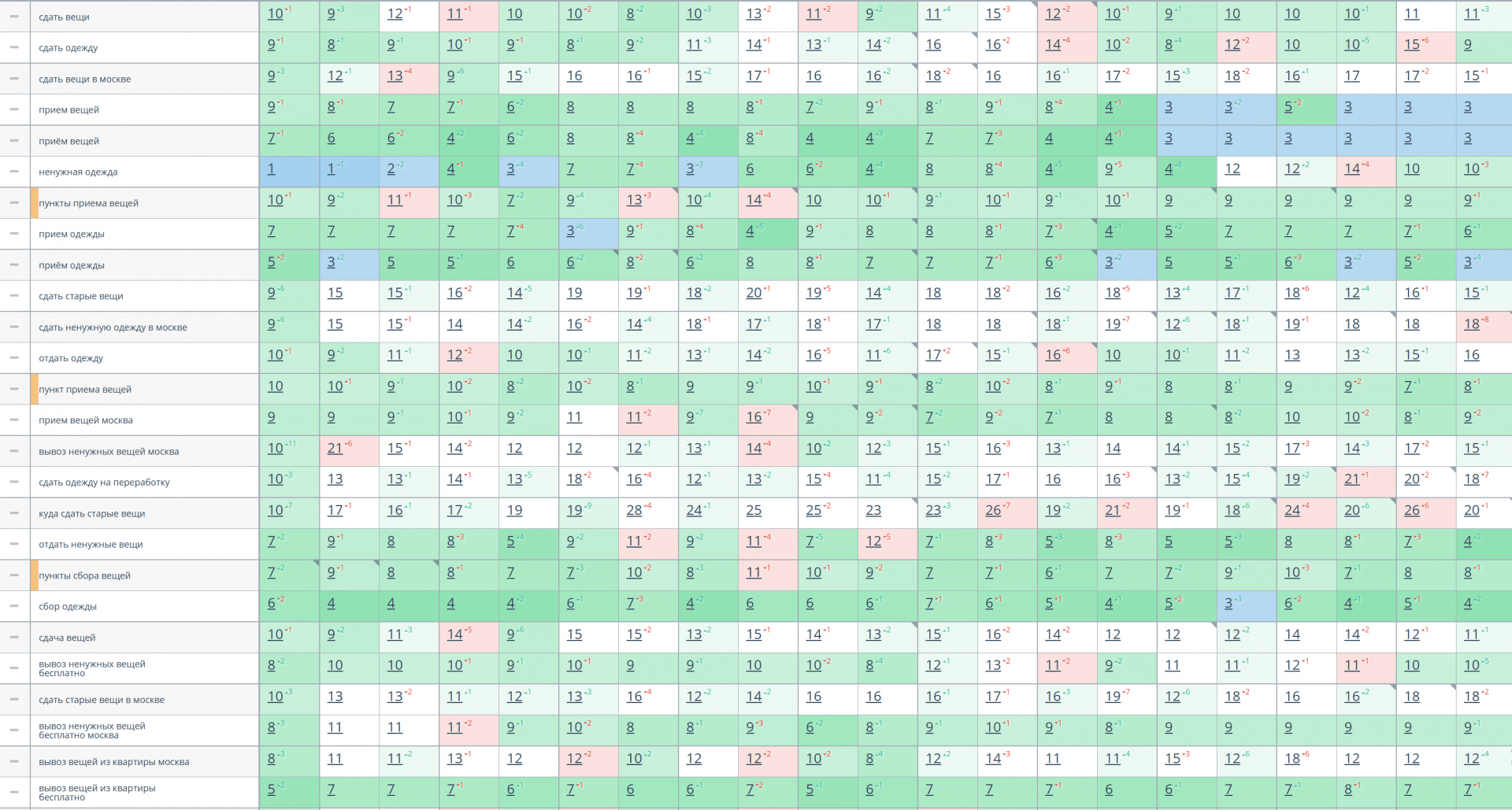 - Конкуренты. Мы брали названия только тех конкурентов, которые были выделены заказчиком как основные, чтобы не “распылять” рекламный бюджет;