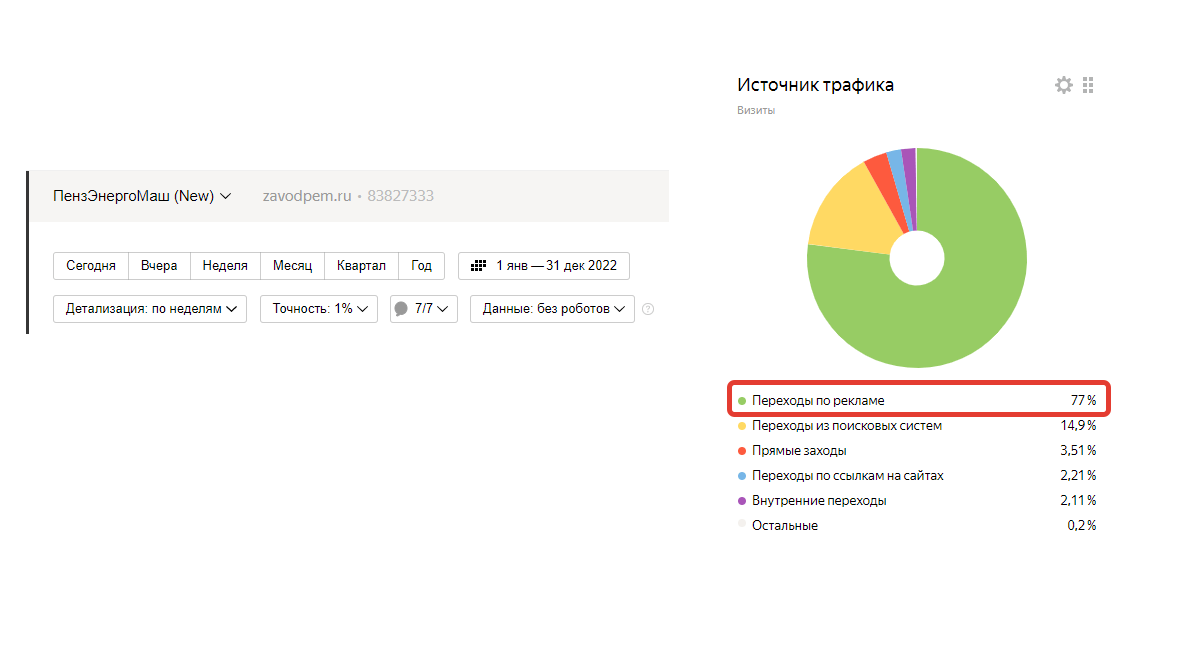 - 77% всего трафика на сайт приходит из контекстной рекламы.