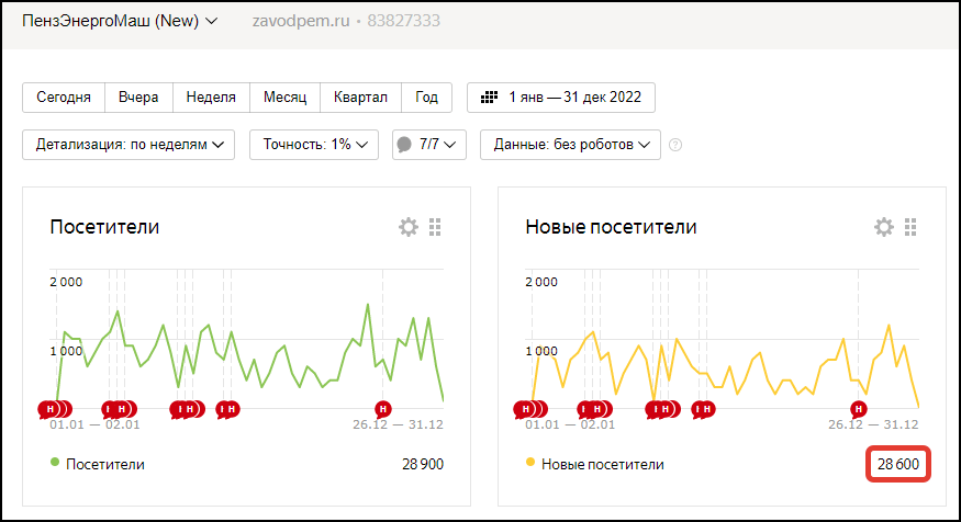 - за 2022 год при помощи контекстной рекламы на сайт привлечено 28 600 новых пользователей.