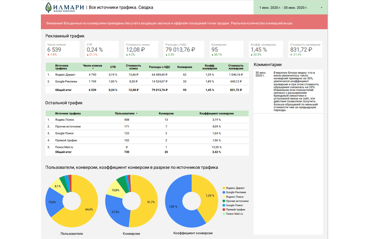- автоматизировали отчетность и учет заявок на базе Google Data Studio.