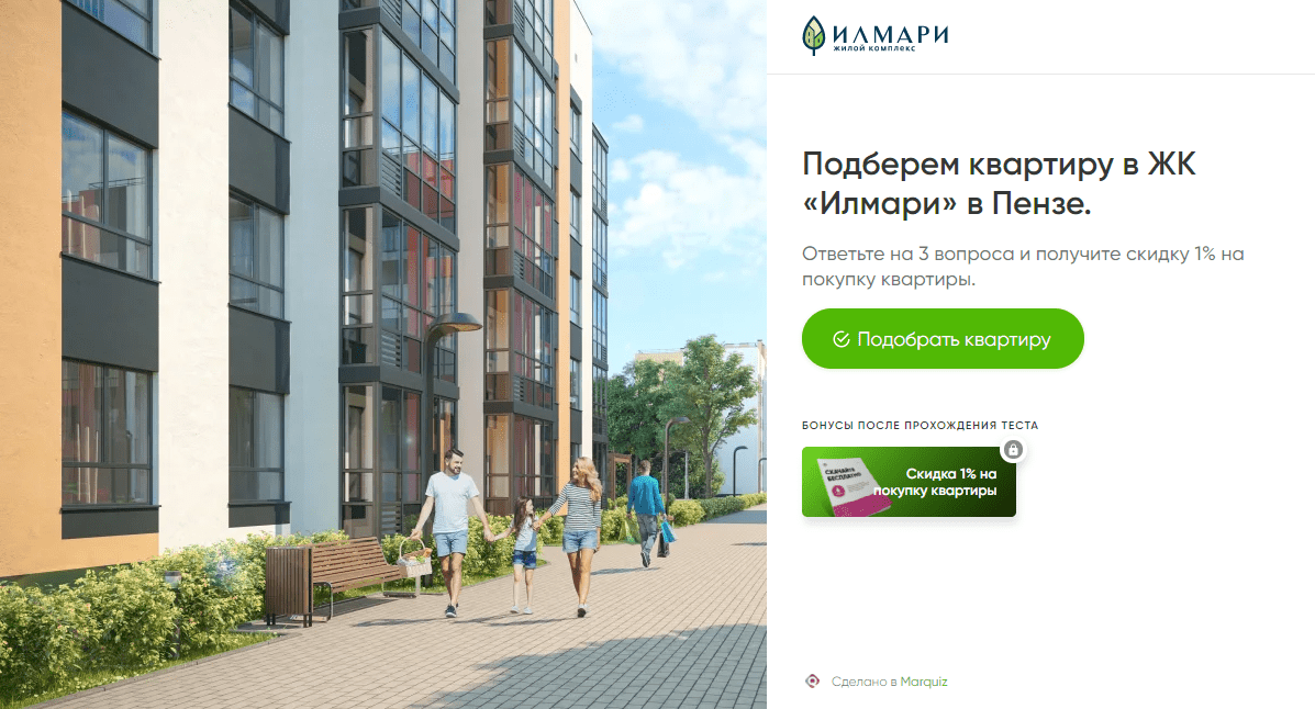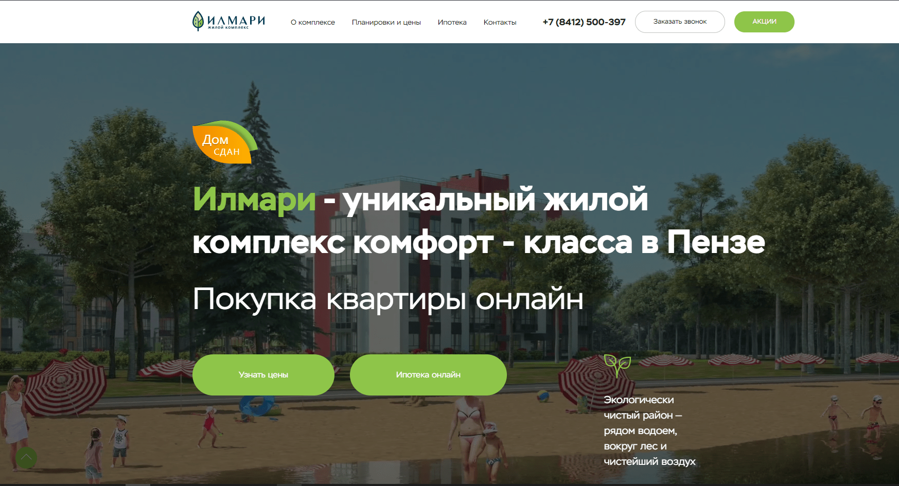 Рис.1 – первый экран сайта ЖК «Илмари»