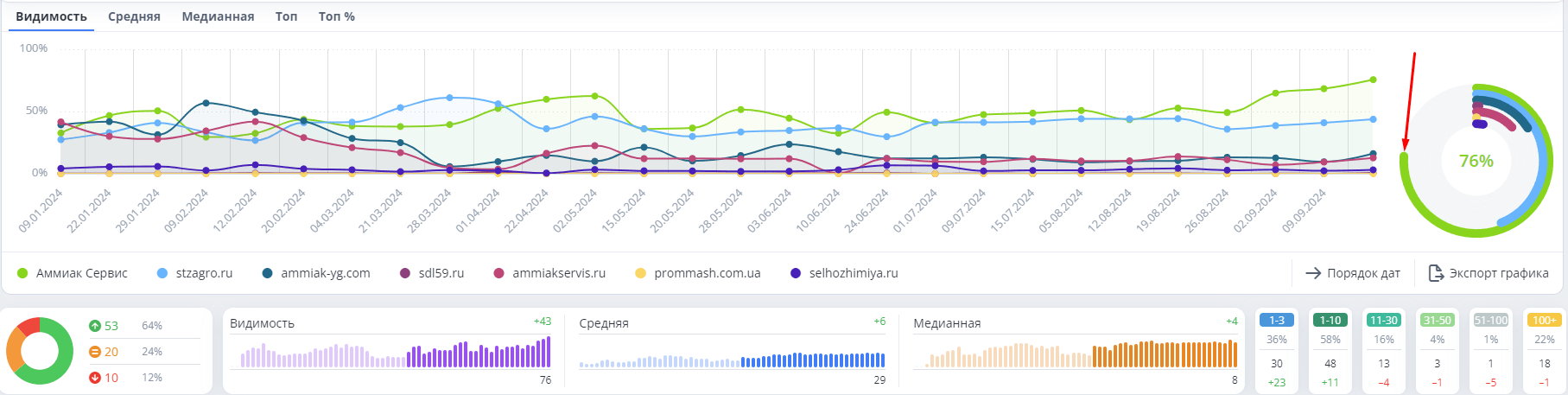 Показатели видимости в сравнении с конкурентами.