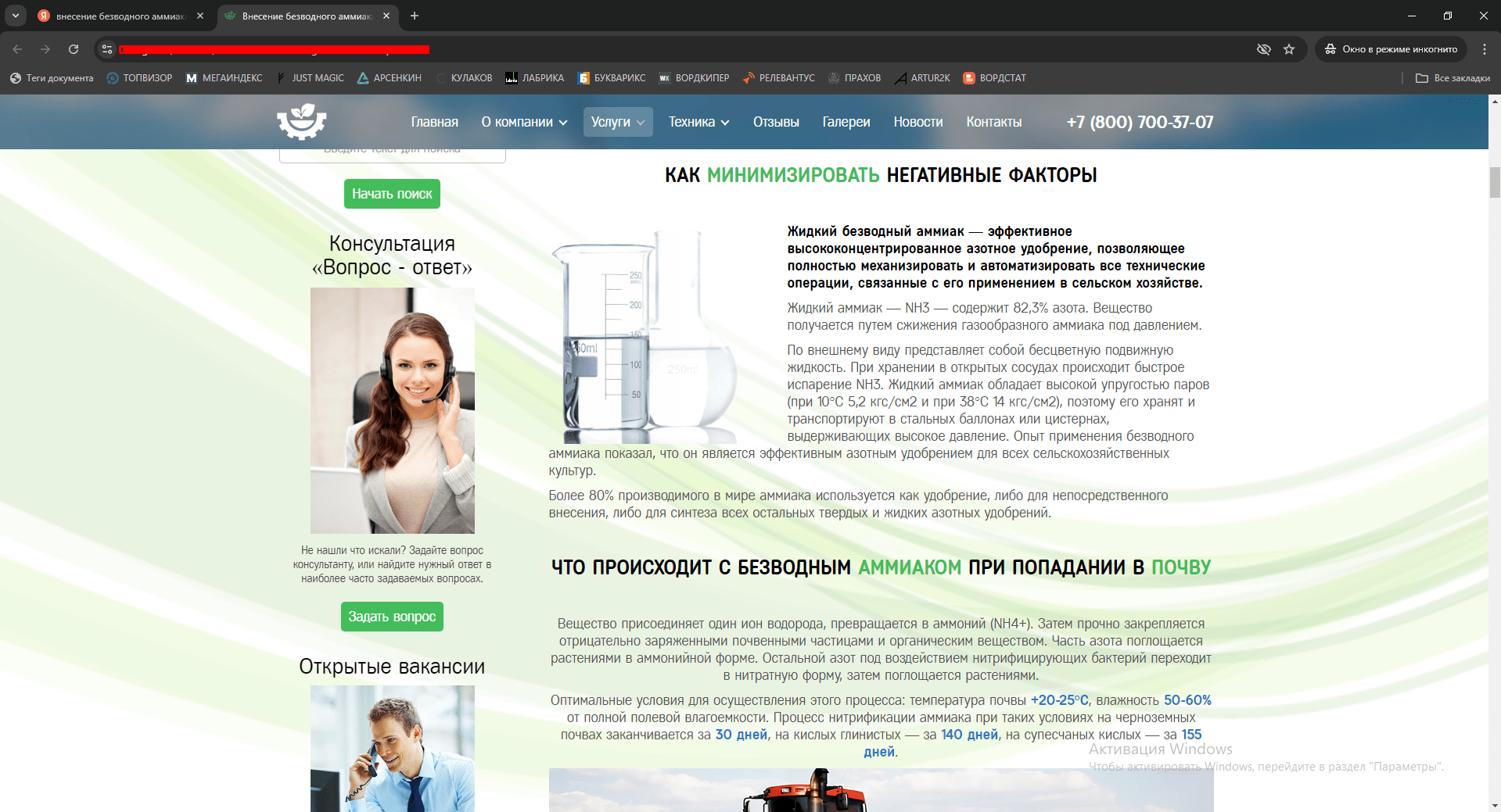 P.s. А так целевая страница Внесение аммиака выглядит сегодня. Как можете заметить, с дизайном мы тоже поработали 🙂
