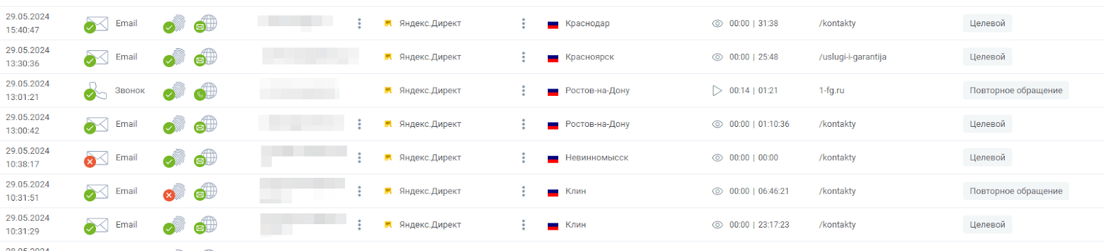 Рисунок 5. Примеры обращений из сервиса calltracking.ru
