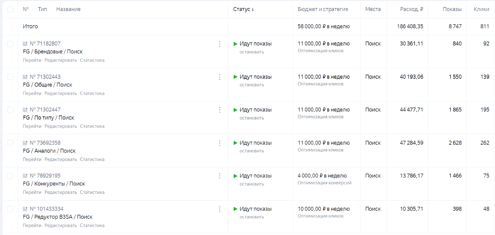 - отключили рекламную кампанию по индустриальным редукторам, так как она работала неэффективно, после ее отключения, конверсия с сайта выросла с 5 до 8%;