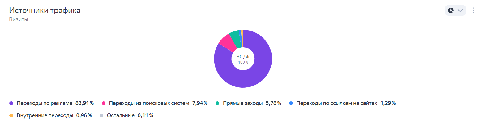 - 83,9% посетителей приходят на сайт через контекстную рекламу