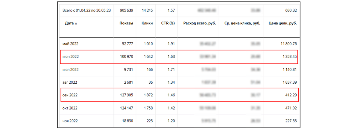 В октябре 2022 года клиент приостановил рекламные кампании в связи со снижением спроса, хотя мы и пытались доказать, что даже в это время нужно оставаться в поле зрения и обрабатывать имеющийся спрос.
