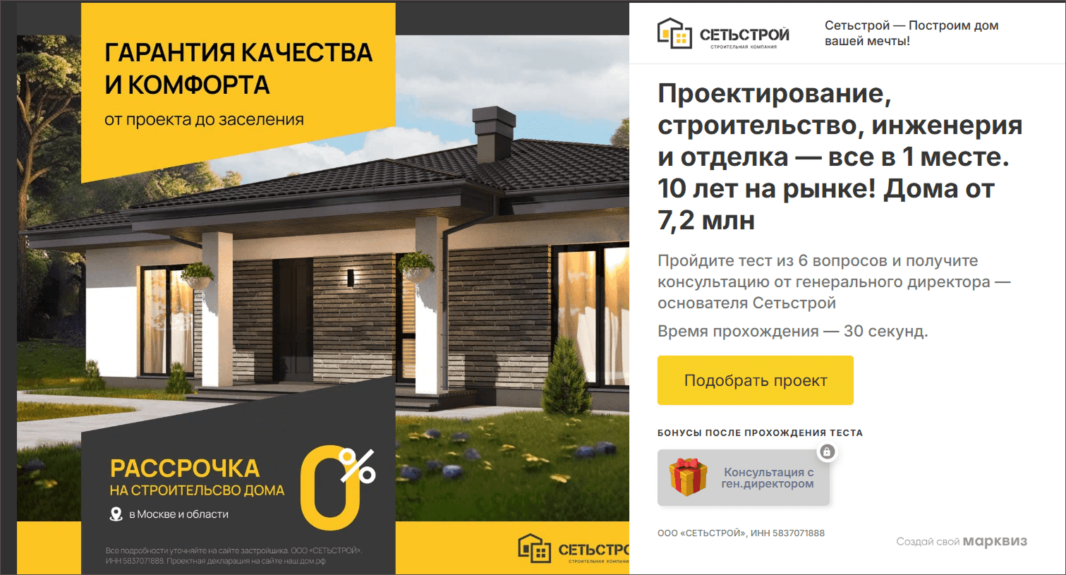 В объявлениях делали упор на то, что строительство «под ключ», что дома делают по ГОСТу, дают 5 лет гарантии, писали про ипотеку.