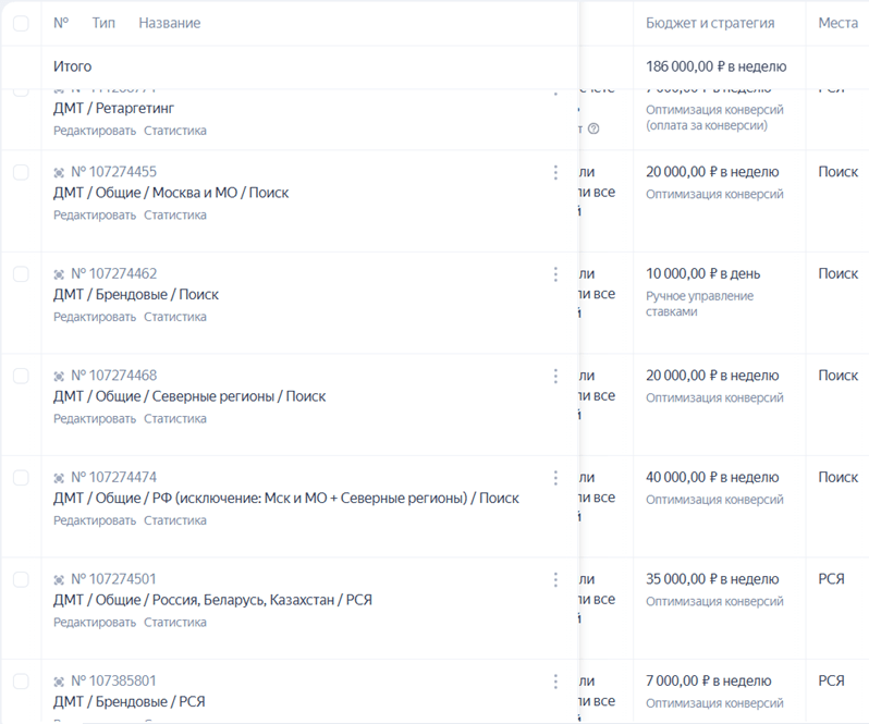 На фоне длительный работы, мы выявили, что самое оптимальное решение – это объединить рекламные кампании и вывести Брендовые запросы (по маркам) в отдельную: