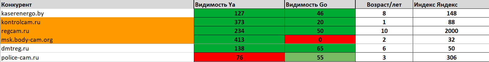 Рисунок 4 – Пример таблицы анализа конкурентов