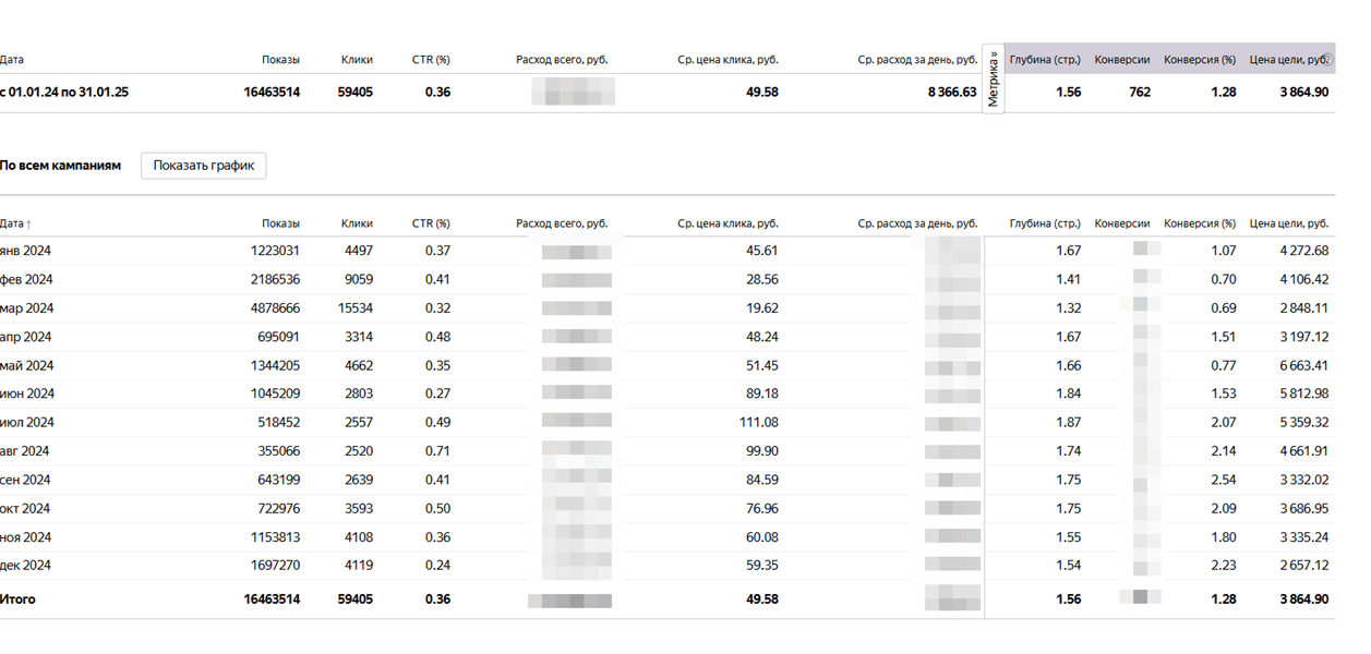 Цифровые показатели по контекстной рекламе (данные взяты за 2024 год):