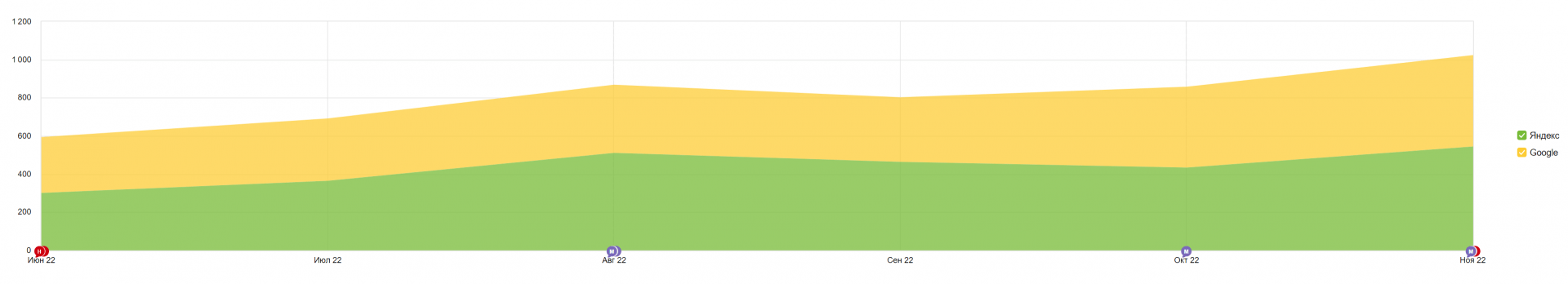 Ежемесячно проводятся работы по закупке ссылок с высокими показателями траста и низкими показателями заспамленности.