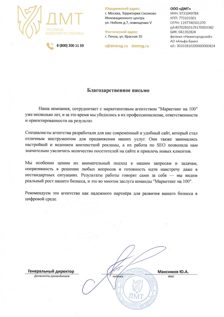 Мы особенно ценим внимательный подход команды к нашим запросам и задачам, оперативность в решении любых вопросов и готовность идти навстречу даже в нестандартных ситуациях. Результаты работы говорят сами за себя — мы видим реальный рост нашего бизнеса, и это во многом заслуга команды "Маркетинг на 100". Рекомендуем это агентство как надежного партнера для развития вашего бизнеса в цифровой среде.