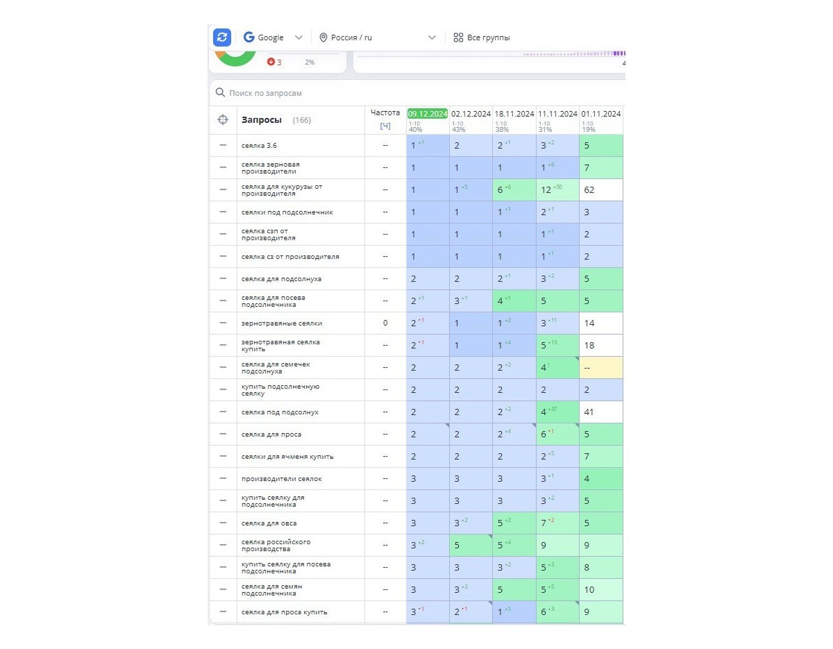 ГЛАВНОЕ: По запросу «зерновая сеялка» мы уверенно держимся в ТОП-2, ТОП-3 по России.