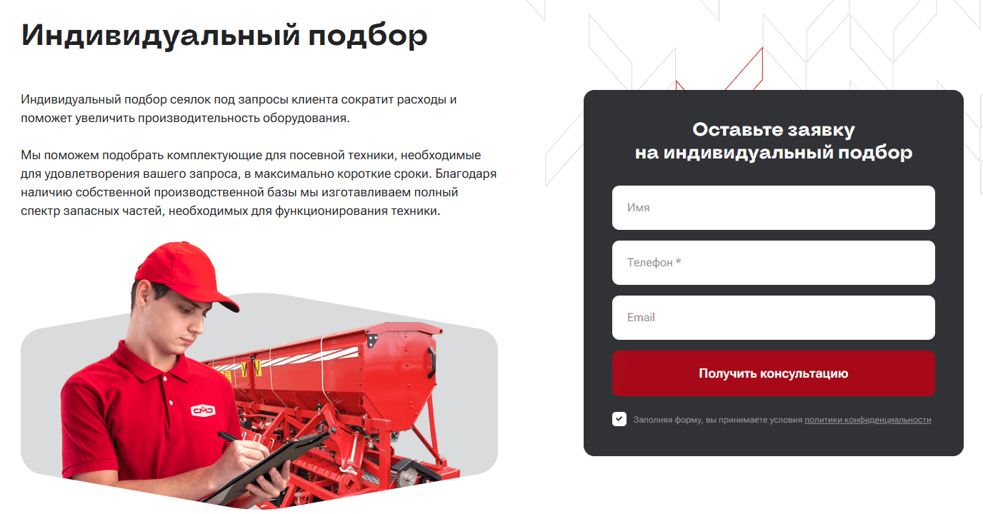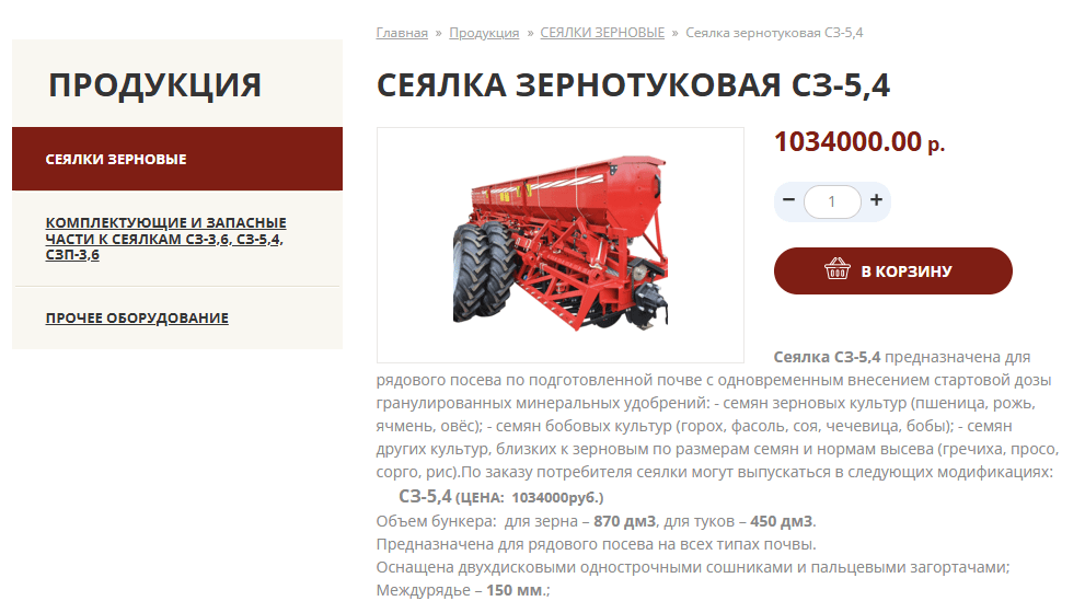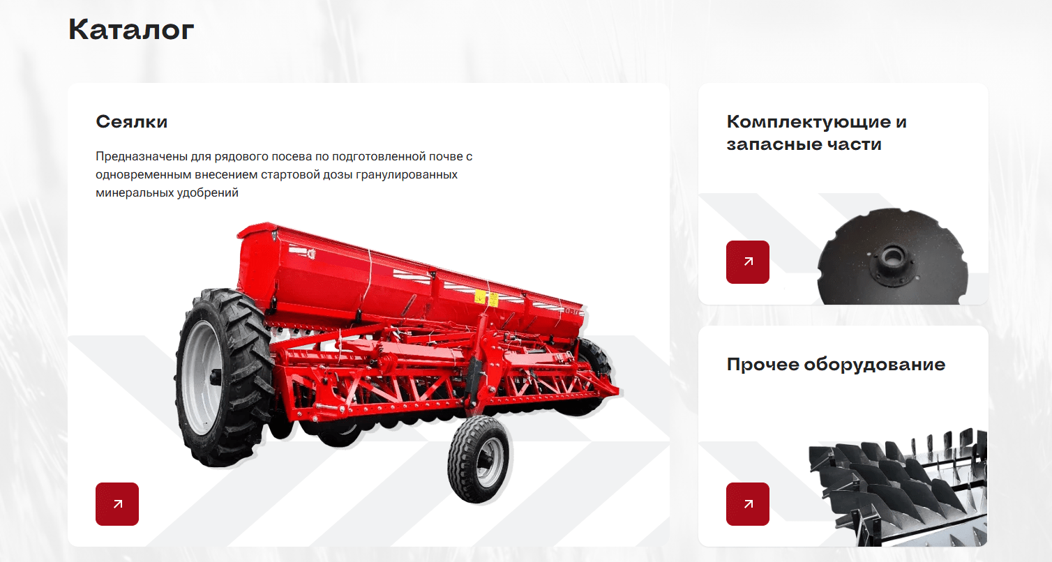 Указанный нюанс сильно осложнял SEO-продвижение уже на старте, так как по широте ассортимента наша компания сильно проигрывает. У «СельМашДеталь» представлены только сеялки и комплектующие, в то время как у конкурентов — сеялки, культиваторы, бороны, плуги, трактора и так далее. В общем, было сложно.