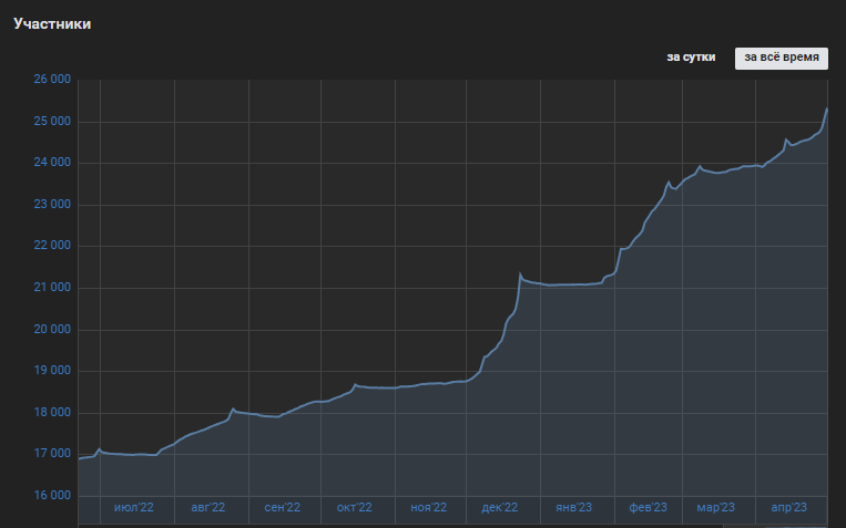 На момент написания кейса — апрель 2023, в группе 25 000 подписчиков.