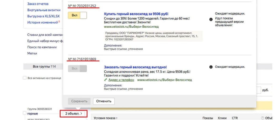 Какие виды рекламных объявлений и параметров РК мы используем?