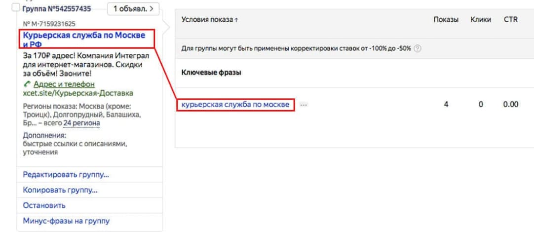 - В объявление входит ключевая фраза — сохраняется принцип релевантности — имеем высокий показатель CTR — получаем низкую стоимость клика. Волшебство!