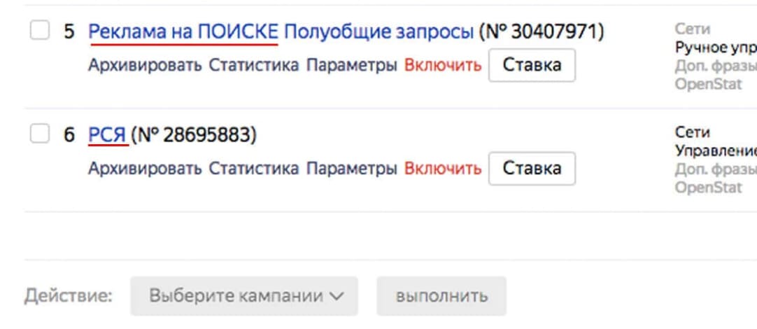 Настройка рекламных кампаний делается таким образом, что кампании на РСЯ и ПОИСК создаются по-разному- Направления отличаются по ставкам и по управлению этими ставками ( для более прозрачной аналитики)
