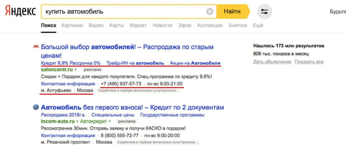 Настройка рекламы, если она выполнена хорошо, позволяет показывать вашу рекламу вот таким большим и красивым объявлением. Для этого нужно: